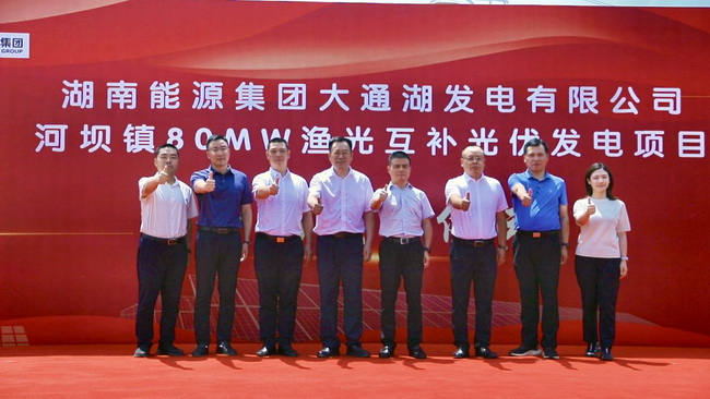 該項目由湖南能源集團所屬大通湖發(fā)電公司投資建設,項目交流側(cè)容量80MW,結(jié)合當?shù)靥厥獾乩憝h(huán)境,采用“水下養(yǎng)殖、水上發(fā)電”的漁光互補發(fā)電模式,使水域資源復合利用率提升至200%,預計年發(fā)電量可達1.08億度,節(jié)約標煤 3.41萬t/年,減排二氧化碳10.3萬t/年。項目2025年3月29日開工建設,2025年5月29日實現(xiàn)全容量并網(wǎng)發(fā)電,工期由7個月縮短至2個月,預計增收2000萬元,彰顯了“湖南能源速度”。 作為湘咨集團承接的首個新能源集中式光伏EPC總承包項目,集團領導高度重視,多次統(tǒng)籌調(diào)度項目推進。自項目啟動以來,全體項目團隊成員迎難而上,充分發(fā)揮技術(shù)支撐作用,在極短時間內(nèi)保質(zhì)保量地完成了項目設計和設備材料采購任務,獲得項目建設單位的高度評價。 下階段,湘咨集團將積極推動戰(zhàn)略轉(zhuǎn)型,加大在新能源領域投入,持續(xù)探索新能源協(xié)同發(fā)展新模式,更好地服務于湖南能源集團能源核心主業(yè)。 大通湖區(qū)委區(qū)政府、湖南湘投能源投資有限公司及參建單位有關(guān)領導出席儀式。