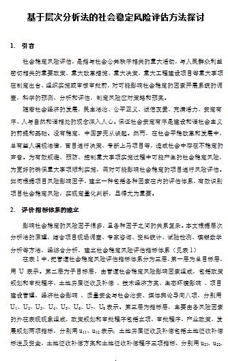 基于層次分析法的社會(huì)穩(wěn)定風(fēng)險(xiǎn)評(píng)估方法探討