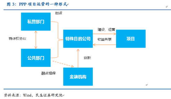 PPP模式(Public-Private-Partnership,即“公共部門-私人企業(yè)-合作”的模式)指的是公共部門通過與私人部門建立伙伴關(guān)系,共同提供公共產(chǎn)品或服務(wù),是20世紀90年代后出現(xiàn)的一種新的融資模式。 PPP模式的一個典型結(jié)構(gòu)是公共部門與中標單位組成的特殊目的公司簽訂特許合同,由特殊目的公司負責(zé)融資、建設(shè)及經(jīng)營。這種融資形式的實質(zhì)是政府通過給予私營公司長期的特許經(jīng)營權(quán)和收益權(quán)來換取基礎(chǔ)設(shè)施建設(shè),以解決政府的財政困境。