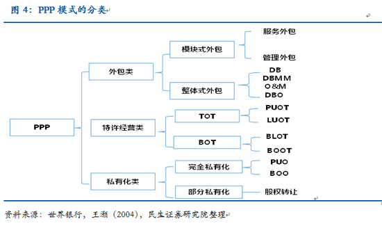 從廣義上來說,PPP指的是企業(yè)參與提供傳統(tǒng)上由政府獨自提供的公共產(chǎn)品或服務(wù)的模式。從世界銀行對PPP的分類來看,主要包括外包類、特許經(jīng)營類和私有化類。因此,BOT本質(zhì)上也可視為是PPP的一種。